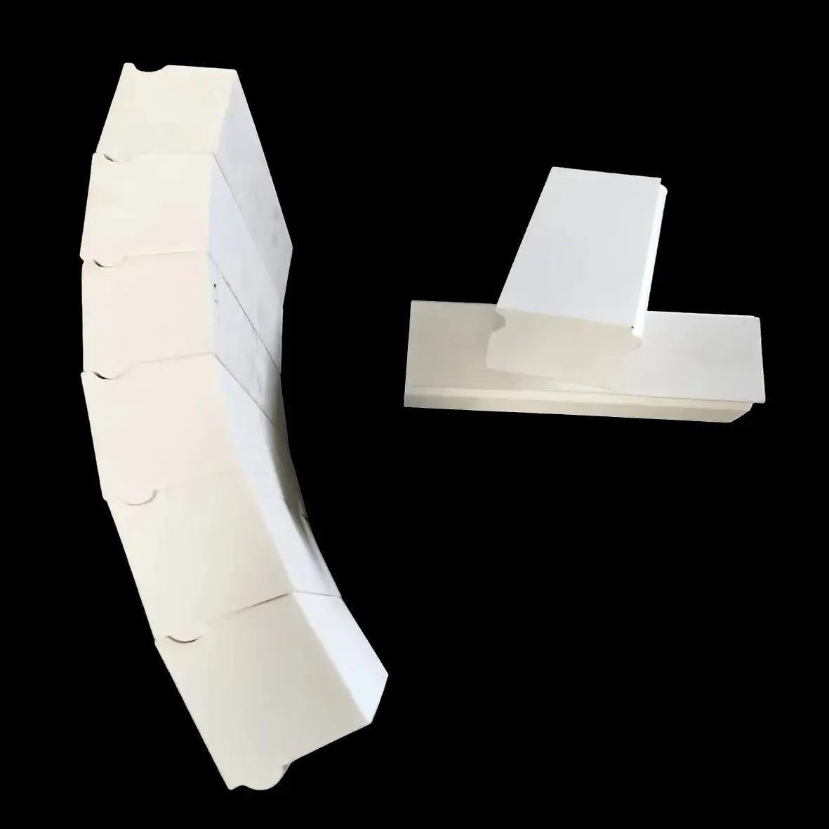 These products are suitable for harsh operating conditions in industries such as petroleum, chemical processing, power generation, and mining. They offer excellent acid resistance, wear resistance, and corrosion resistance. With a density of approximately 3.65g/cm³, which is about half that of steel, they significantly reduce equipment load. Depending on equipment structure and service conditions, tiles can be fixed to inner surfaces using ceramic adhesive bonding, welded fixtures, or rubber vulcanization.